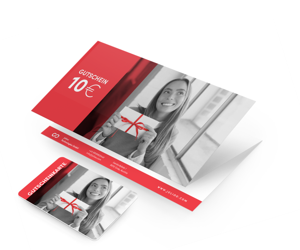 Sie wollen Ihre Wert- und Geschenkgutscheine in ausgedruckter Form in Ihrem Geschäft anbieten? Ganz einfach über unser System Ihre Gutscheine und Gutscheinkarten anlegen und in ausgedruckter Form in Ihrem Geschäft anbieten. Die Einlösung erfolgt spielend einfach über die Jolioo System-App oder Ihr Kassensystem.